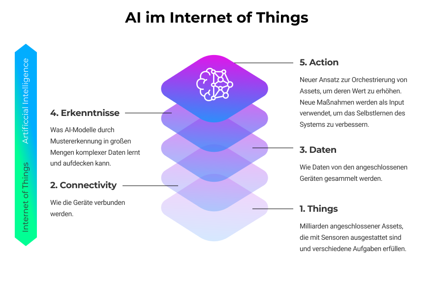 Mit der AI+IoT Kombination können vernetzte Geräte Sensordaten ohne oder mit nur geringer menschlicher Beteiligung sammeln, analysieren und darauf reagieren.