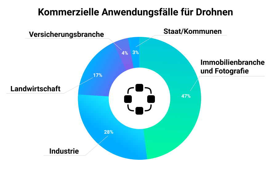 Bis 2025 wird der weltweite Markt für unbemannte Luftfahrzeuge voraussichtlich einen Wert von 63 Milliarden Dollar übersteigen (gegenüber einem Wert von 4,4 Milliarden Dollar im Jahr 2018). Obwohl in Deutschland nur 19.000 von insgesamt fast 500.000 Drohnen kommerziell genutzt werden, macht der kommerzielle Drohnenmarkt mit 404 Millionen Euro den größten Anteil des insgesamt 574 Millionen Euro großen Marktes in Deutschland aus.