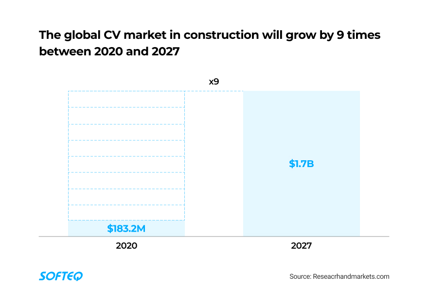 Experts predict that CV in the construction market will grow at a steady rate. Construction companies have already evaluated the benefits of using CV, and the applications of this technology will expand exponentially.