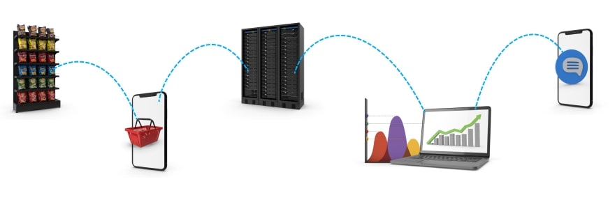 Attached to a shop window, store shelf, or wall, beacons send one-way messages to customers’ smartphones. Those messages can be detected by a variety of apps, which use mobile operating systems to search for nearby beacons. While retail giants like Target build their own apps to collect shopper location, dwell time, and food traffic data, smaller brands partner with 3rd-party app publishers who bundle beacon tracking into their applications. Once an app identifies a beacon, it notifies the company’s server about a customer lingering in the dairy department. That’s how push notifications like “Get three packs of Stonyfield Greek yogurt for the price of two” end up on our phones.