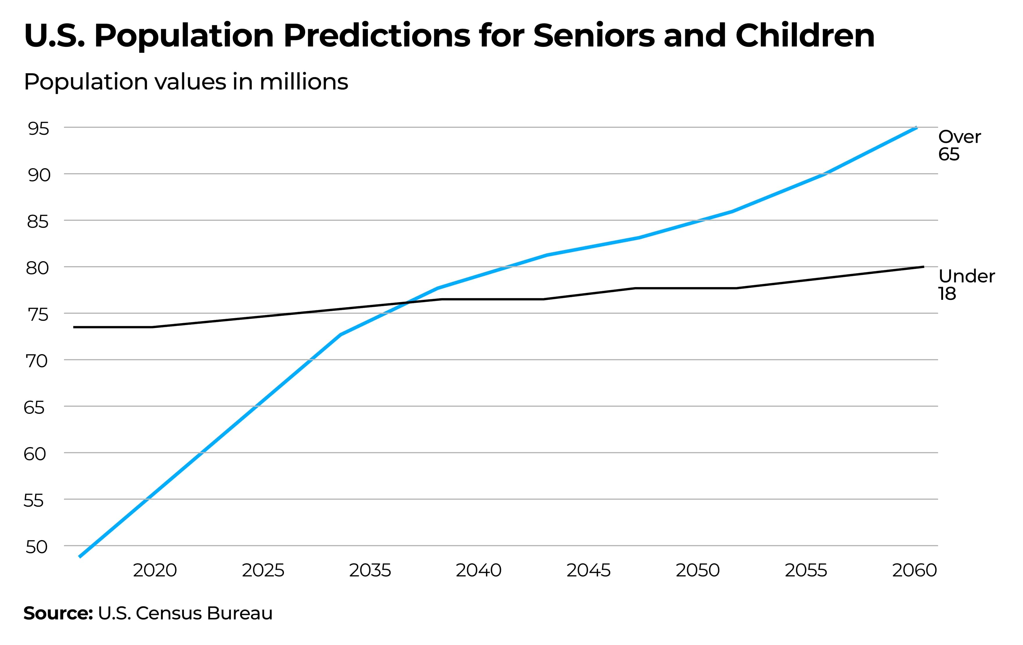 The US population is aging. According to the US Census Bureau, the number of Americans aged 65 and older reached 50 million last year. By 2030, this number could reach 78 million, which would amount to 19% of the country’s population. The Census Bureau predicts that seniors will outnumber children under 14 by 2035.