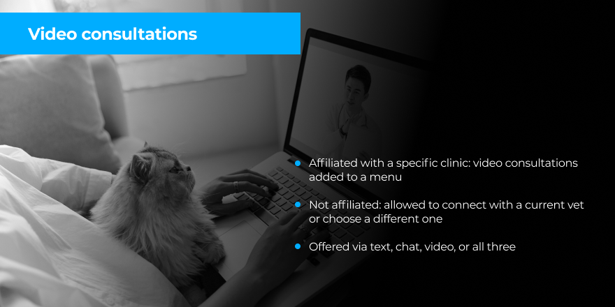 So, modern telecommunication tools enable clients to access high-quality veterinary care regardless of their location, the state of their pet’s health, or the time of the day. Virtual veterinary solutions help collect and store medical records in one place, provide telephone and video consultations, and facilitate chatting between practitioners and their clients via a web or mobile app.