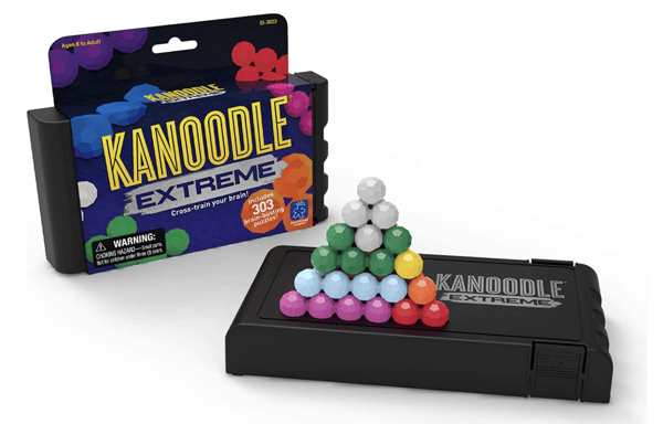 This year our gift is the Kanoodle Extreme, containing 303 brain-busting 2-D and 3-D puzzles. Solving puzzles helps reinforce existing connections between our brain cells. It also increases the generation of new relationships. This, in turn, improves mental speed and thought processes. Puzzles are especially good for improving short-term memory, which helps us remember shapes and colors and visualize the bigger picture to figure out which pieces will fit together.