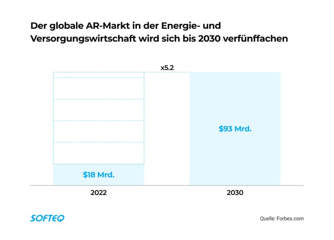 Diese Vorteile machen die Technologie für Versorgungsunternehmen attraktiv, und sie setzen AR jetzt aktiv ein. Experten sagen für den globalen AR-Markt im Energiesektor ein starkes Wachstum voraus. Im Jahr 2023 wird die Branche voraussichtlich ein Fünftel an den weltweit eingesetzten AR-Hardware-Lösungen ausmachen.
