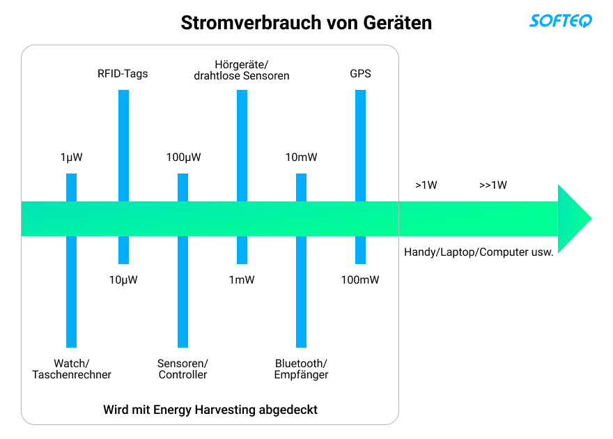 Im IoT geht es beim Energy Harvesting eher um die Energieerzeugung im Mikromaßstab, im Gegensatz zu Windturbinen und Solarkraftwerken, die über 5% der in Deutschland verbrauchten Energie erzeugen. Um den Betrieb aufrechtzuerhalten, sollten die Wandler regelmäßig mindestens einige Milliwatt Leistung aus ihrer Umgebung abführen.