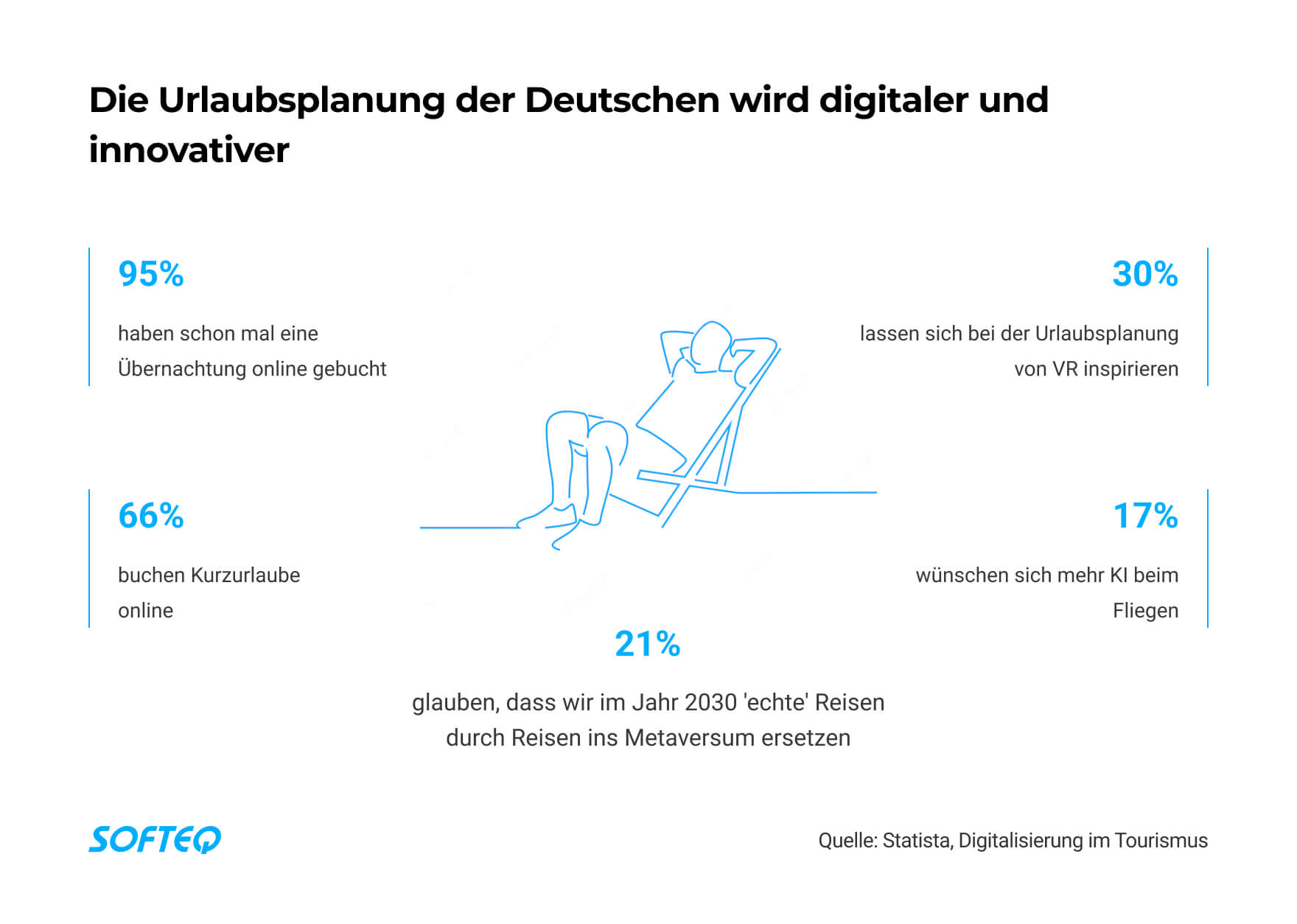 Auch im Tourismus hat KI längst Einzug gehalten – und zwar lange bevor Menschen damit begannen, ChatGTP ihre Reise planen zu lassen. KI bestimmt zu einem wachsenden Teil, wie Menschen reisen und welche Entscheidungen sie dabei treffen. Ein Beispiel ist die immer stärkere Personalisierung von Reiseangeboten, die durch die Analyse von Kundenpräferenzen mit KI-basierten Lösungen möglich ist. Diese Lösungen tragen wesentlich zum Erfolg großer Reiseplattformen wie booking.com oder Airbnb bei. Doch nicht nur der Buchungsprozess, sondern auch die sichere Lagerung des Gepäcks oder das gastronomische Angebot am Reiseziel werden zunehmend von KI bestimmt, zum Beispiel in Form von Bedienrobotern oder Robotern im Restaurant. Die untenstehende Übersicht zeigt, dass die deutschen Nutzer für die neuen Technologien bereit sind: