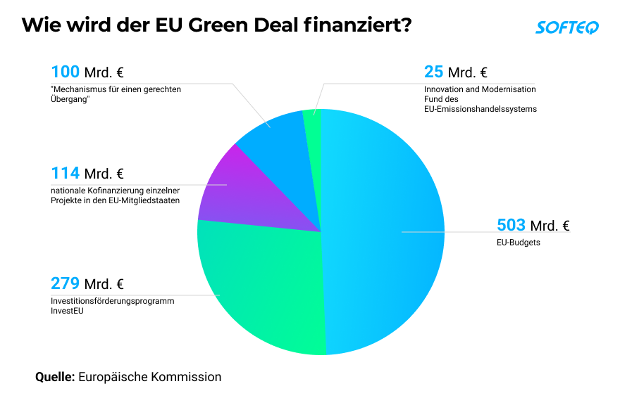 Unternehmen, deren Aktivitäten den oben genannten Prioritäten entsprechen, können finanzielle Unterstützung erhalten. Laut Plan der EU-Kommission wird zwischen 2021 und 2030 öffentliche und private Investitionen in Klimaprojekte von mindestens 1 Billion Euro mobilisiert, davon: