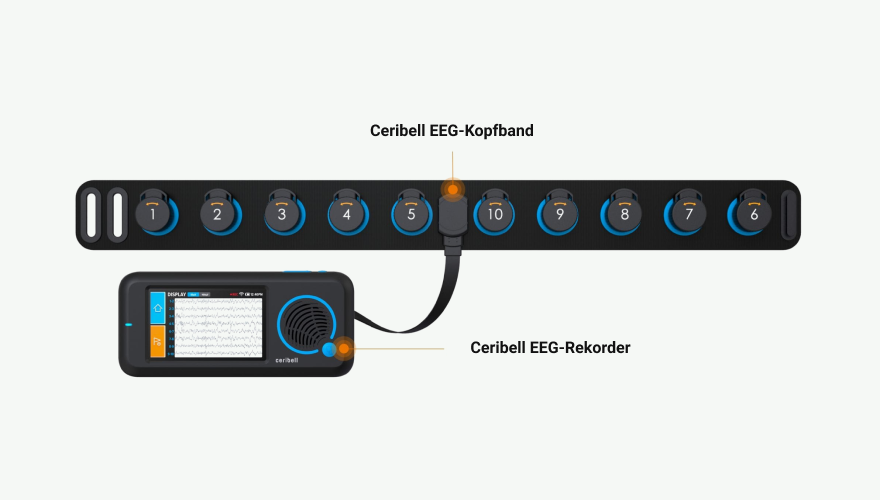 EEG-System von Ceribell. Das Ceribell EEG-System ist für die schnelle Einrichtung durch medizinisches Personal konzipiert. Das EEG-Kopfband ist in 5 Minuten einsatzbereit und passt sich an verschiedene Haartypen und Kopfgrößen an. Echtzeit-Streaming von EEG-Daten an ein sicheres Cloud-Portal ermöglicht es Ärzten, EEG-Daten von überall her zu überprüfen.