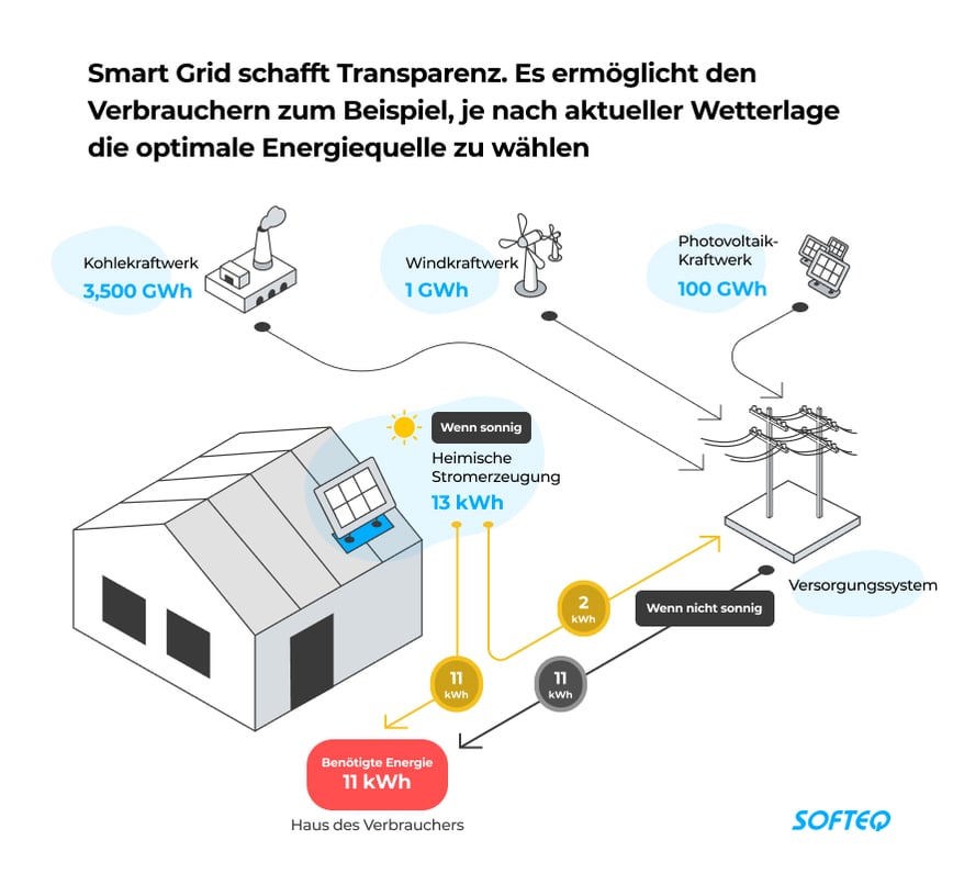 Advanced level: Smart Grid mit KI. Im Vergleich zum oben genannten Typ sind diese Lösungen um künstliche Intelligenz erweitert. Hochentwickelte Algorithmen helfen Ihnen, Daten besser zu verstehen, Trends zu erkennen und Vorhersagen zu machen. So können KI-Smart-Grid-Systeme zum Beispiel Netzanlagen auf Abweichungen analysieren. Sie können auch künftige Ausfälle und den maximalen Energiebedarf vorhersagen.
