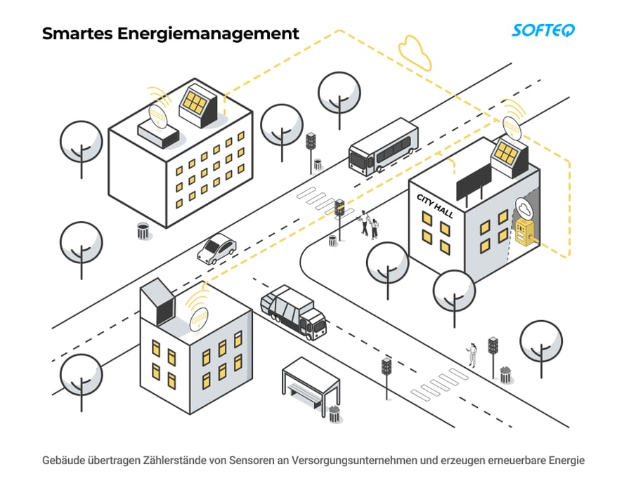 Weltweit revolutioniert IoT die Art und Weise, wie wir Energie erzeugen, verwalten und verteilen. Ein Beispiel aus dem Alltag ist ein intelligenter Stromzähler zur Überwachung des Stromverbrauchs. Mit IoT können solche Geräte an einem Gebäude angebracht und an ein intelligentes Energienetz angeschlossen werden. Dadurch können Versorgungsunternehmen Sensordaten von Zählern in Echtzeit erfassen. Menschliches Eingreifen ist hierbei nicht mehr erforderlich.