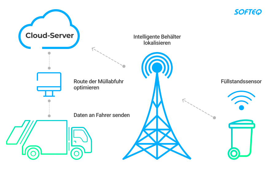 IoT-basierte Abfallwirtschaftslösungen für Smart Cities bestehen in der Regel aus Endpunktgeräten (Sensoren), Gateways, Cloud-Plattformen sowie Web- und mobilen Anwendungen.