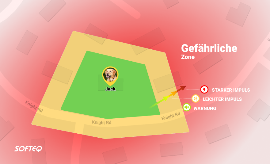 Die Lösung zeichnet sich durch eine komplexe Geschäftslogik aus. Dadurch können Anwender virtuelle Zäune erstellen oder sofortige Kommandos auf ihrem Mobiltelefon direkt über Bluetooth oder durch ein WLAN- oder LTE-Netzwerk geben. Benutzer können außerdem wählen, wie sie unerwünschtes Verhalten korrigieren, wenn sich ihr Hund dem virtuellen Zaun nähert oder über ihn hinausgeht. Die Lösung ist mit Mapbox integriert: Virtuelle Zäune werden mit einem interaktiven Mapping-Tool erstellt, indem man Punkte auf der Karte zur Grenzsetzung antippt.