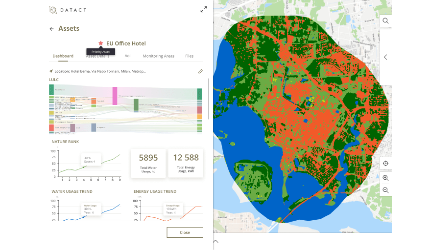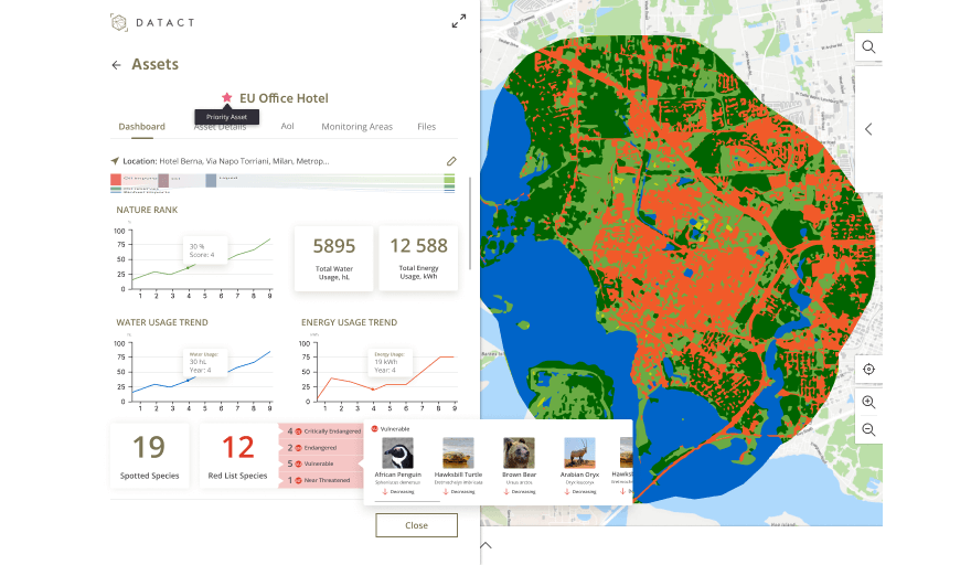 The solution is a digital platform that helps businesses assess their impact on the environment. It captures data from the target user areas with the help of satellites, drones, and on-ground sensors and then generates insights on how activity impacts nature. In particular, it can spot areas of biodiversity that could be affected by production activities. With the tool, companies can use metrics to identify business risks and opportunities.