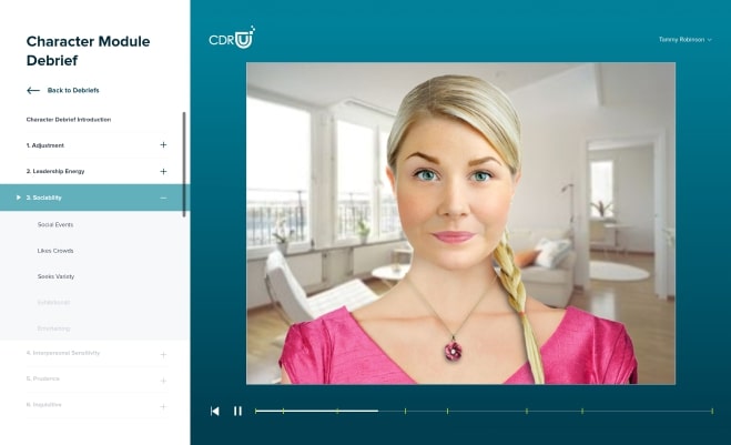 First, users take an assessment in the CDR 3-D Suite to identify the key drivers of their personality, motivations, and risk behaviors. Once completed, it is possible to log into a new CDR-U Сoach platform (The End-user Portal) and select an avatar—the personal coach for a debrief. Next, the user gets access to a personalized action planning module and a detailed report.