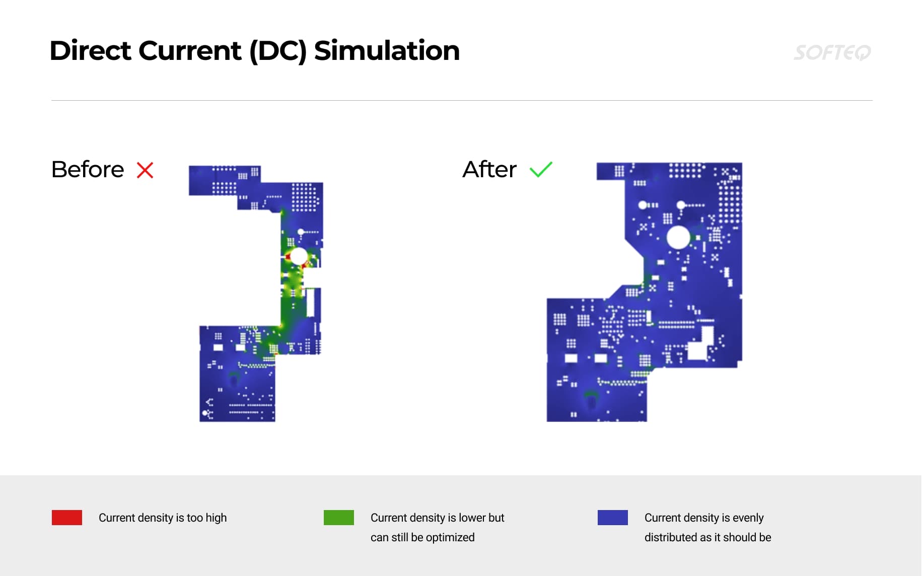 The initial shape of the PCB copper area was insufficient to deliver current to the electronic components. Most likely, it would cause overheating and voltage drops in the power delivery network (PDN) affecting the reliability of the device.